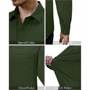 Mens 4-Way Stretch Long Sleeve Collared Casual Dating Button Down Dress Shirt