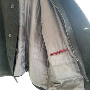 Men's size 4X Wool Coat in Gray by PRONTO UOMO. Single-Breasted. Lined but lining does NOT zip out. Snaps at cuffs. Pockets. Fabric is 80% wool, 20% nylon.