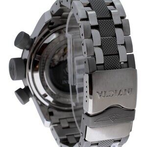 Additional Notes: Crown and pushers screw down for water resistance, sweeping small second hand, all chronograph hands properly reset to the 12:00 position, an exhibition case back so you can see the movement, a fixed bezel, and a day-date indicator