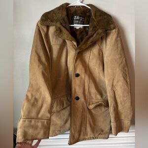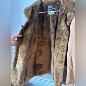 Mens 60’s - 70’s Vintage Light Brown Suede Leather and Faux Fur Jacket