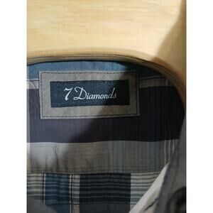 Details: Get your cowboy chic on with this men's 7 Diamonds button-front shirt! With its classic pearl snap buttons and two chest pockets, it's a perfect blend of style and functionality. In great condition, it's ready to rock any occasion. Whether you're hitting the town or just chilling with friends, this shirt adds a touch of Western flair to your look. Saddle up and show off your style with 7 Diamonds!
