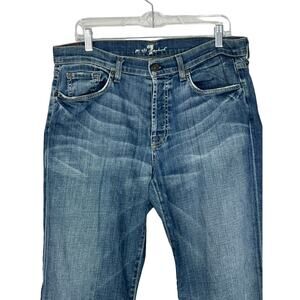 Mens 7 For All Mankind Blue Medium Wash Straight Leg Stretch Denim Jeans Size 34