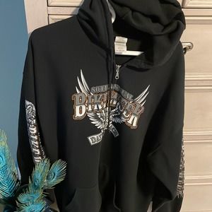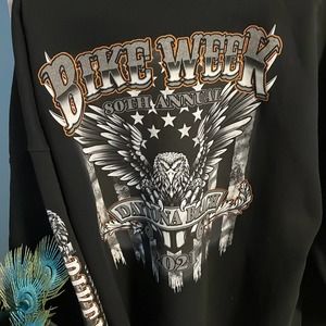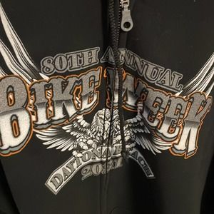 Bike week 80th annual Daytona beach 2021 canvas graphic design with eagle camouflage in over American flag good condition. Has detail going down both sleeves and front of hoodie. Zipper functioning no issues good condition no stains.