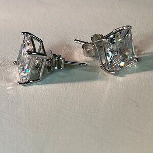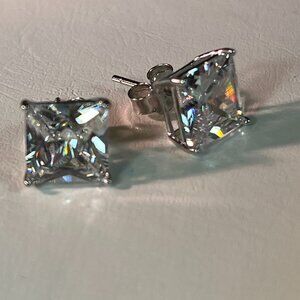 Men's 925 Silver Crystal Stud Earrings Screw Back Square 6 mm with gift box
