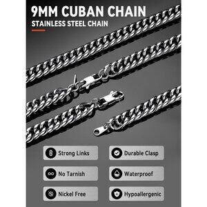 Premium Material: This black cuban link chain is crafted from 316L stainless steel. This mens cuban link chain is lead-free, nickel-free, and hypoallergenic—safe for sensitive skin.