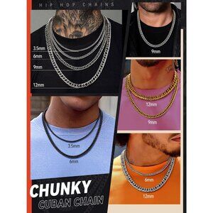 Multiple Size Options: Choose from 3.5mm, 6mm, 9mm, or 12mm widths and 18"-30" lengths for the perfect fit. The robust lobster clasp ensures secure wear. This miami cuban link chain for men is perfect for layering or solo wear.