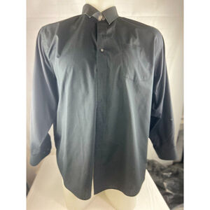This is a Men's Dress Shirt by A(2)Z New York. It is a Size 4XL. It is preowned but in excellent condition.It has button-front closure, long sleeve, chest pocket, black in color.