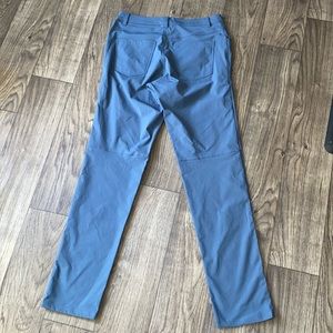 Classic fit abc lululemon pants in the color iron blue no damage just don’t wear they look brand new. They’re 34 waist with a 37” inseam