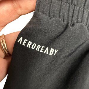 * STYLE- Regular fit. Elastic waist with drawcord. 100% recycled polyester plain weave. Moisture-absorbing. Side seam zipper pockets. From the "AEROREADY" Collection by adidas. Hybrid-style (easy, water-draining mesh pockets, quick-drying). Performance. Great for going to the beach, travel, vacation, gym, workouts, so much more.