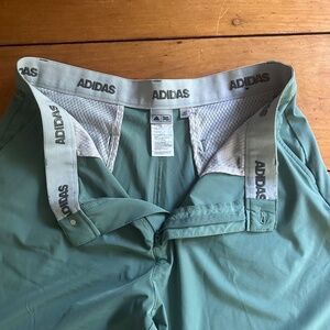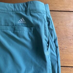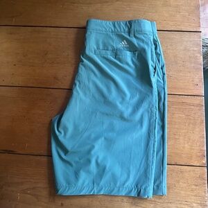 Nice pair of Adidas Men's green golf shorts. Only worn a couple of times. 93% Polyamide 7% Spandex. Stretchy waist. 4 Pockets. Sticker residue on tag. From a smoke free home. ADVS19R722