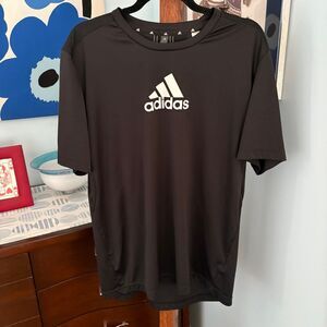 Men's ADIDAS Primeblue 'Badge of Sport' Black Logo T-Shirt w/ 3 Stripes size L