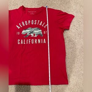 Men's AEROPOSTALE Red Camo Bear Graphic Tee, size MEDIUM, made of cotton material. There is a tiny black stain (as shown in the last photo). Preloved,signs of usage, in excellent condition. #aeropostale #redtee