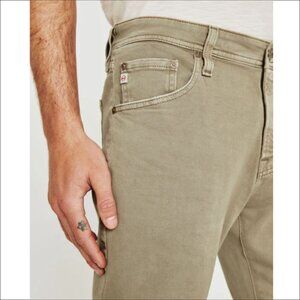 The Tellis Modern Slim Jean for men is updated in a sulfur-dyed neutral green shade with subtle AG-ed™ fading and worn edges to mimic 7 years of wear. Featuring a fitted upper block and tapered leg opening, this men’s jean is designed in 8.7 oz. Hyper Soft Bull Denim, a left-hand twill fabric that allows the yarns to gently relax and untwist for a supple, velvety-soft feel. It's designed to get even softer as you wear it. Made from our exclusive AG Cloud Soft Denim™, it's dual-elastic stretch offers added comfort and enhanced recovery.