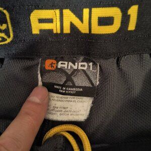 Men’s “AND1” Grey/Black/Yellow Basketball Shorts. Size Large.