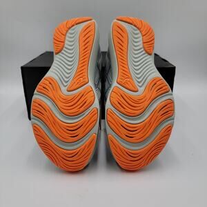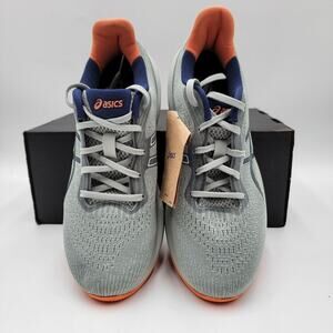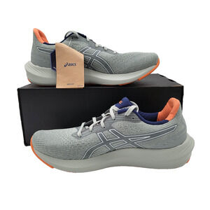 The Men's ASICS Gel Pulse 14 Light Sage Orange Sz 8 running shoe is a lightweight and comfortable option for athletic activities. Featuring a low top design with a mesh upper and Gel insole, these sneakers are designed for optimal performance. The solid gray color with a touch of light sage orange adds a stylish touch to the overall look. With a rubber outsole and ASICS branding, these shoes offer both style and function for the modern man seeking quality athletic footwear. Sold new with original box. Lid to box is missing and box sustained some shipping damage as well. All is visible in photos.