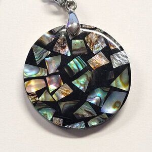 Mens Abalone Pendant Chain Round Genuine Abalone Pendant Necklace