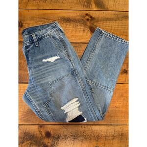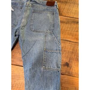 These jeans are in excellent pre-loved condition! No stains! These distressed jeans have a straight leg with distressing! They have a carpenter style look to them, as well. These are very well made jeans! Men's size 32x32.