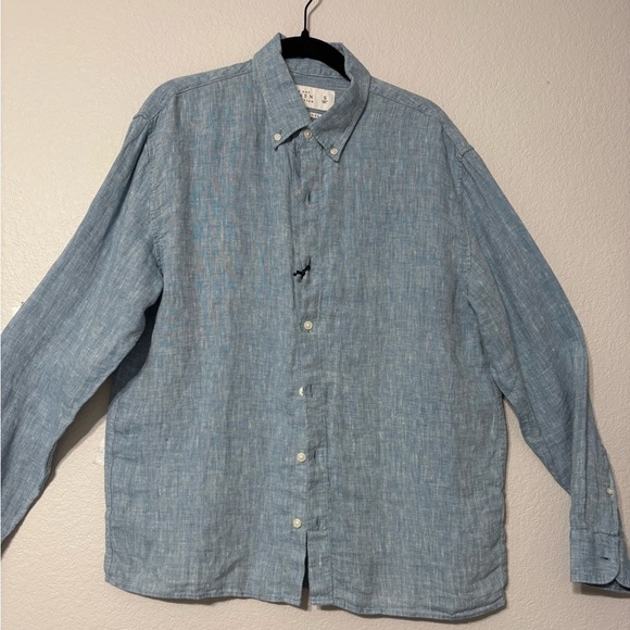 Elegant light blue linen button down shirt. Ideal for warm days. Effortless style. NWT