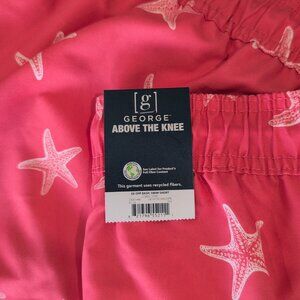 These men's above the knee swim trunks in 3XL size feature a colorful star fish pattern, making them perfect for a day at the beach. With a 6-inch inseam, they offer a comfortable fit for recreational activities in the water. These George brand swim trunks are machine washable and have a classic beach theme, adding a fun touch to your swimwear collection. Made in Kenya, these trunks are a stylish and practical choice for any sunny day by the water.