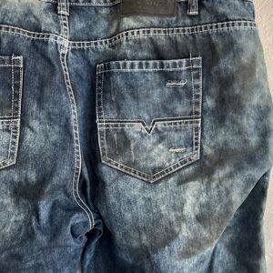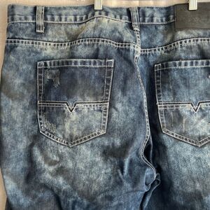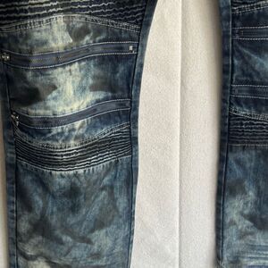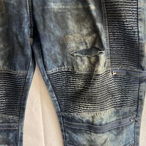 This is a stylish pair of men’s Access Apparel biker jeans. These pants feature intentional distressing and fading, with unique ribbed panels and zipper details for a bold, modern look. A soft, flexible cotton blend offers a comfortable fit. The distressed wash gives them a worn-in feel, perfect for casual outings or a night on the town. These are big, baggy, fun jeans.