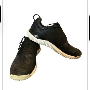 Very gently loved Black Spikeless golf shoe features an offset wrapped saddle with multiple eyelet rows for customizable lacing, added stability, and unique crossover aesthetics. Made with durable material that’s comfortable to wear. Lightweight and breathable. They have a snake skin like design. See pics and video for condition. Barely used in good condition.
