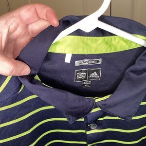 Mens Adidas Climacool Golf Polo striped 2XL navy Blue & Lime Green