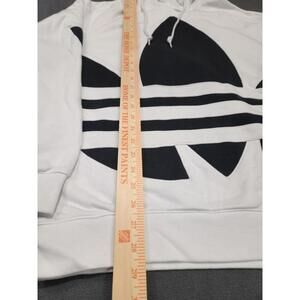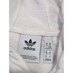 The Men's Adidas Originals Big Trefoil Cotton Hoodie Sweatshirts FM9909 in White size XL is a stylish and comfortable activewear jacket perfect for soccer or other physical activities. Made from 100% cotton with a drawstring closure and long sleeves, this hoodie features a hood for added warmth and style. The iconic adidas brand and trefoil design add a sporty touch to the classic white color, making it a versatile piece for any man's wardrobe.