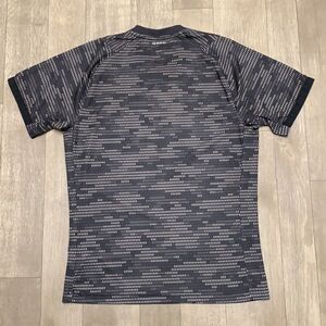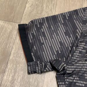28” from top to bottom 21” armpit to armpit. Size medium. Gray/black with orange logo. In good condition.