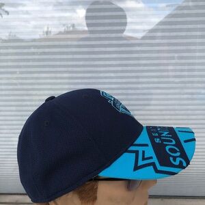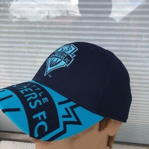 Men's Adidas Seattle Sounders FC Navy Light Blue Snapback Hat Sz Large/X-Large . Adidas cap with bold navy and teal design. Features iconic logo.