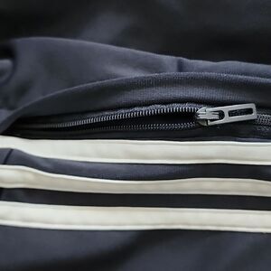 Men's Adidas track pants. Size small. They are a dark navy blue, but they almost look black in some lighting. They have 2 zippered side pockets and a drawstring waist. They are in great condition.