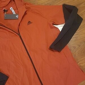 A lightweight layer to keep you warmed up before you conquer the field, this men's jacket is made of woven nylon with a slight stretch. The side slits on the hem of the full-zip hoodie allow for enhanced breathability.