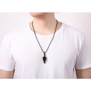 Men's Adjustable Black Rope Healing Crystal Natural Gemstone Pointed Necklace