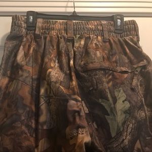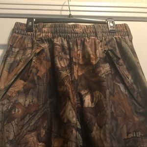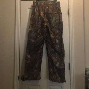 Men's Advantage Timber by Whitewater Outdoors. Large. Two front pockets with zipper one back pocket with zipper. Leg opening at bottom with zipper and snaps to go over boots.