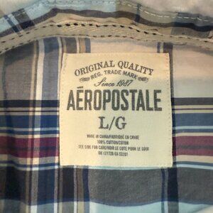 Men's Aeropostale Shirt Size L Blue Plaid Button Down Long Sleeve Casual