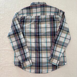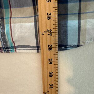 This Men's Aeropostale shirt in size L is a blue plaid button-down with long sleeves, making it a versatile and casual addition to your wardrobe. Made from 100% cotton in a knit fabric, it features a collared neckline, button closure, and is machine washable for easy care. Perfect for casual occasions in the fall, winter, or spring, this shirt has a regular fit and includes a pocket detail for added convenience. Whether you're dressing for college, outdoor activities, or everyday wear, this classic and colorful shirt from Aeropostale is an ideal choice.