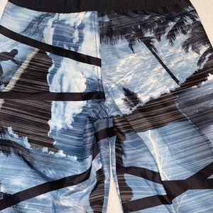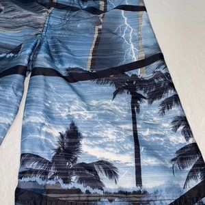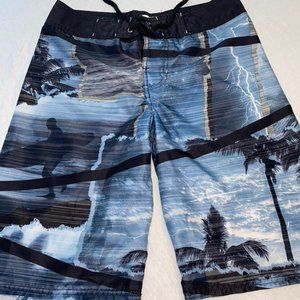 Mens NWOT swim trunks with velcro/tie waist. 28" waist and 10.5" inseam. 100% polyester.