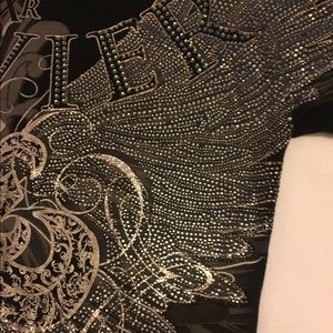 Great detail, rhinestones that make this shirt a hit. Great night club shirt with comfort!