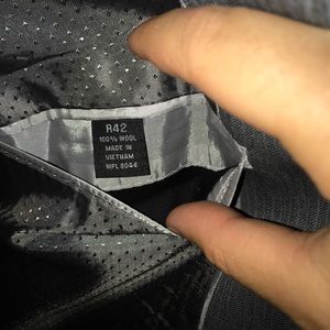 Grey suit with subtle white stripe