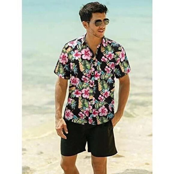 Men’s Allegra Hawaiian Floral Short Sleeve Men’s Button Down 46 Large