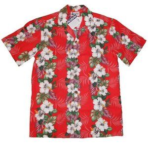 Men's Aloha Republic Island Hibiscus Panel lei Hawaiian Button Up Red Shirt