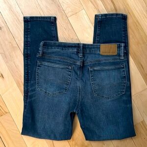 Jeans are in good condition and are free of rips, tears, and stains. There is a lot of stretch in the waist and legs for a comfortable fit. Zipper fly with a button fastener. Comes from a smoke free home.