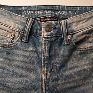 Mens American Eagle Jeans Size 26x28 Skinny Leg Light Acid Wash Distressed