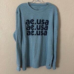 Men’s American Eagle Long-Sleeve Thermal Shirt, Blue, Large