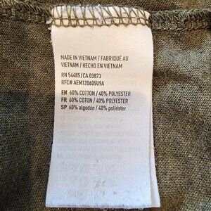 This Men's American Eagle Outfitters Seriously Soft Green Logo T-Shirt in size Large is a comfortable and stylish addition to any wardrobe. Made from a blend of polyester and cotton, it features a solid green color with the brand's logo as an accent. The short sleeve design, crew neck neckline, and regular fit make it perfect for wearing in the summer, fall, and spring seasons. Easy to care for with machine washable fabric, this t-shirt is a versatile piece that can be dressed up or down for any occasion.