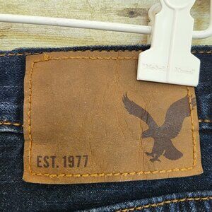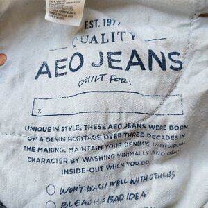 Good used condition American Eagle jeans. I don't think they came with the holes (a cut/slit on the right thigh) and a hole on the left knee area. 100% Cotton.