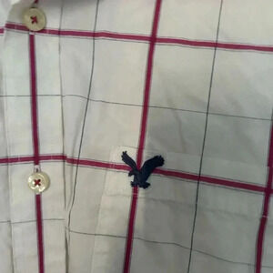 Men’s American Eagle White And Pink Plaid Button Up Shirt Size Large