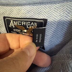 Men's American Living XL Light Blue Long Sleeve Polo Shirt Herringbone Pattern