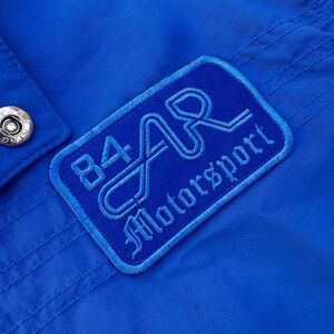 Stand out in this bold royal blue “B4R Motorsport” jacket by American Rag. Lightweight with a race-inspired design, it features snap-button pockets, a sleek mandarin collar, and subtle logo detailing on the chest. Perfect for layering or adding some edge to your streetwear look.