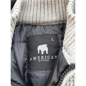 american stitch bomber, gray knit hoodie, men’s size large jacket, streetwear zip up, casual urban jacket, fall winter layering piece