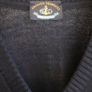 New no tags Amerigo Vespucci navy blue pullover sweater -never worn. Pure wool V Neck long sleeve